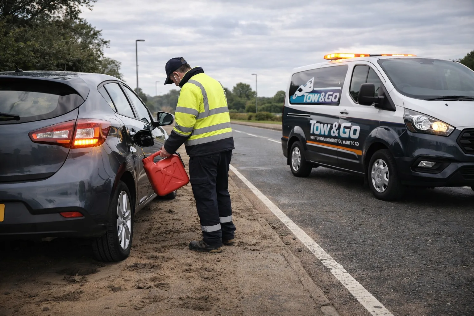 Run out of fuel and stuck at the roadside? Tow & Go provides fast, reliable vehicle fuel delivery across Nottingham and the East Midlands — available 24/7. One call and our local roadside team will bring the fuel you need to get moving again. Call Now for Immediate Fuel Delivery.